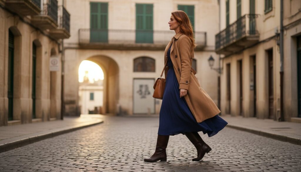 - Sukienka z Rozcięciem + Kozaki na Szpilce: Wybierz elegancką, jedwabną sukienkę midi z bocznym rozcięciem i połącz ją z muszkieterkami na cienkiej szpilce – to idealny strój na wieczorne wyjście.